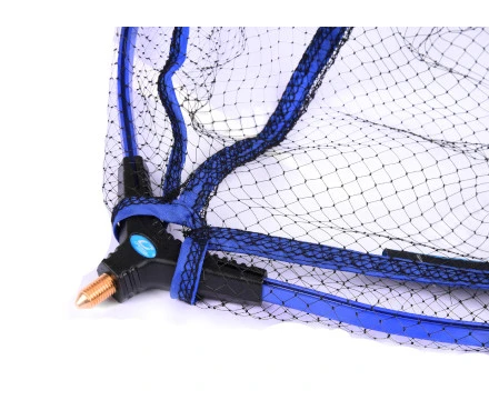 These robust landing nets are made of 0.25mm knotted nylon in an inconspicuous black color with a mesh size of only 8mm. This mesh size prevents the whole lead assembly from sinking through the meshes when landing or unhooking the fish. The oval, blue head is equipped with a metal spreader block, creating a very solid whole. You have a choice of size small or medium.