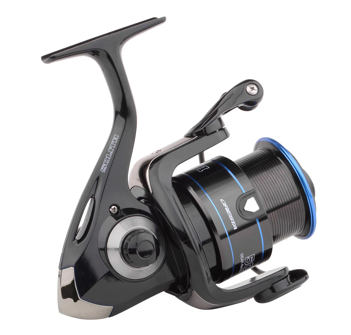 This rugged, yet elegant-looking Cresta Solith SX reel is tailored for feeder fishing. The plastic reel body and hollow bracket keep the weight down. The S-curve mechanism and 6+1 bearings allow the internals to run very smoothly. The semi-deep spool prevents unnecessary backing. The finely adjustable drag system and anti-return provide maximum control during the drill. The flattened top of the finely finished line clip ensures that both nylon and braided line can be safely secured at the desired fishing distance. The Solith SX reels are available in sizes 3000, 4000 and 5000 and are perfect to combine with the Solith feeder rods.