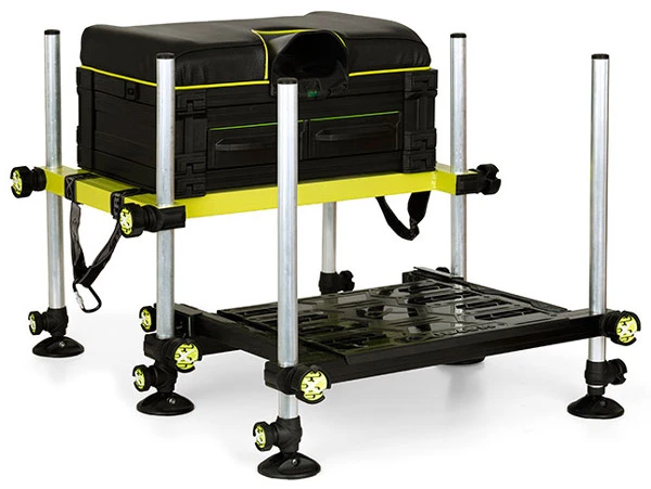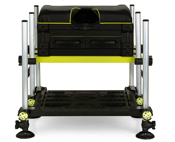 This lightweight Matrix F25 Seatbox is the perfect seatbox for both recreational and competitive coarse fishing! This comfortable seatbox has a total weight of just 13.5 kg and can be easily transported with the padded strap! Positioning the seatbox is easy with the 6 telescopic 25 mm legs with swivel mud feet. The padded seat also features a built-in spirit level, perfect for uneven ground! Also included are 1x Front Drawer Unit en 1x Shallow Tray Unit. A great setup that is not only very comfortable but also looks great!