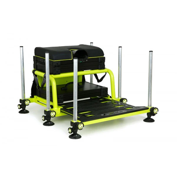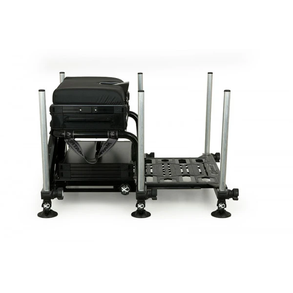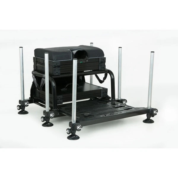 This very luxurious aluminum seatbox from Matrix is ideally suited for long sessions and match fishing where top quality equipment is a requirement. Features a large integral ‘anti-warp’ footplate that slides under the frame and a padded carrying strap for easy transport. The seatbox stands on 6 telescopic legs with mud feet and is equipped with a spirit level so you are always 100% stable on any surface. Furthermore, the seat box has a removable, padded carrying strap which ensures comfortable transport. Moreover, you are always comfortable with the padded seat with built-in level!
